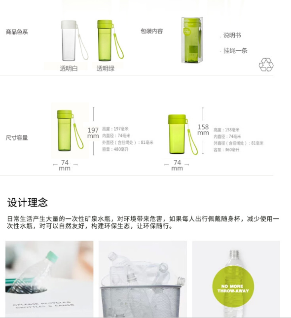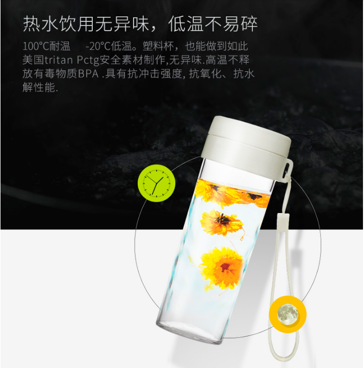 產(chǎn)品特點(diǎn):傾斜防漏,堅(jiān)固耐用,無毒塑料;熱水飲用無異味,低溫不易碎