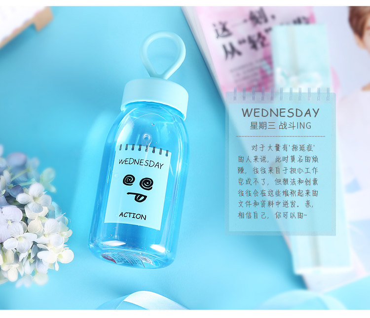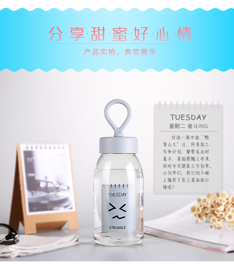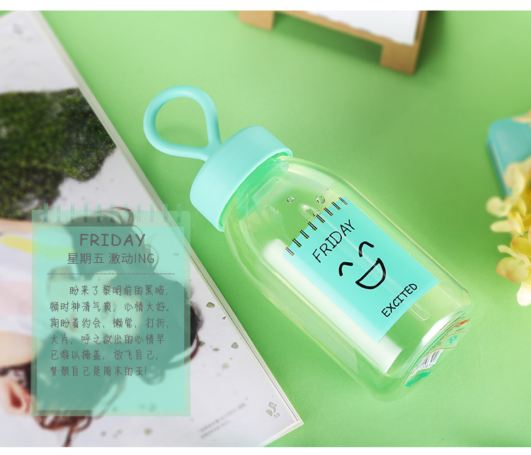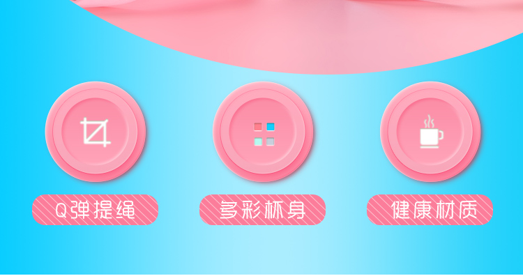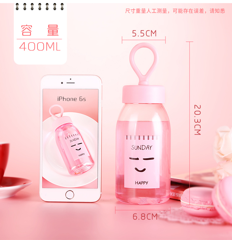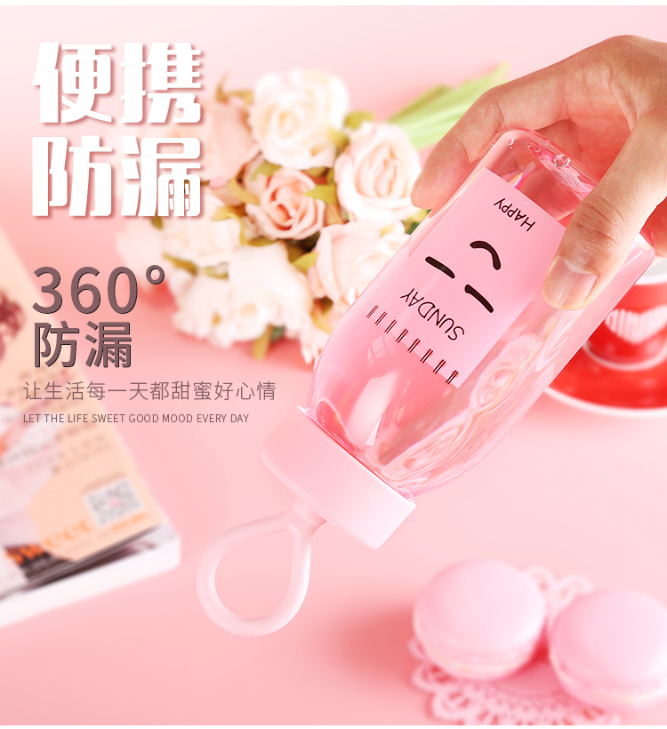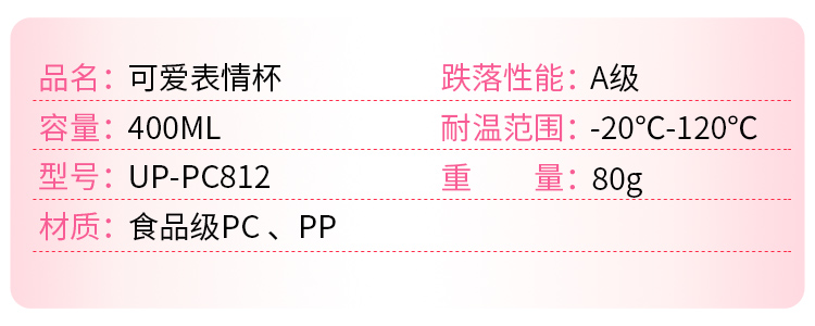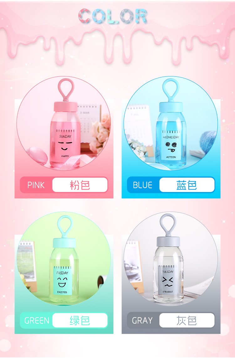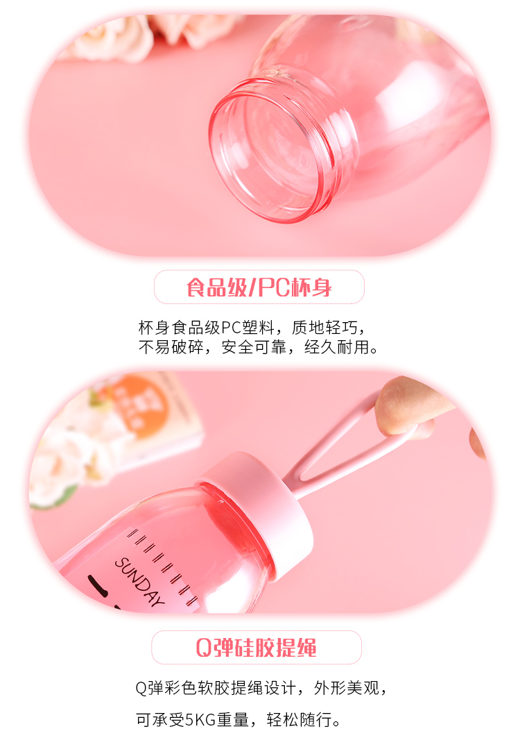 產品特點:食品級PC/PP,400ML容量,質地輕巧,不易破碎,安全可靠,經久耐用,Q彈彩色軟膠提繩設計,外形美觀