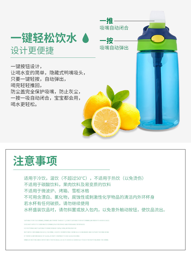 傾斜防漏,堅(jiān)固耐用,無(wú)毒塑料;熱水飲用無(wú)異味,低溫不易碎